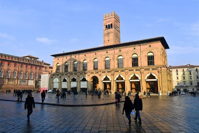Eeuwenlang het bestuurlijk hart van Bologna, nu museum en openbare zalen. De Torre dell’Orologio geeft een schitterend uitzicht over Piazza Maggiore en de omliggende palazzi
